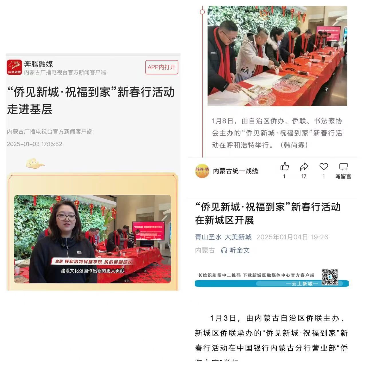 內蒙古僑聯官微、內蒙古統一戰線官微、奔騰融媒、新城區政府官微、澎湃新聞對活動進行了報道,學校作為四所高校代表接受了媒體采訪報道。