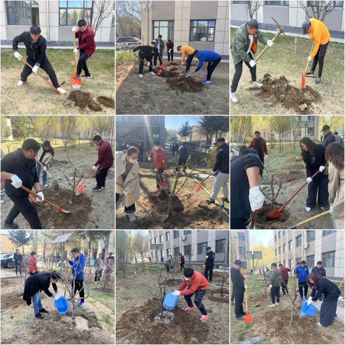 黨員們熱情高漲、干勁十足,有的揮鍬鏟土、有的扶苗定植、有的澆水灌溉,每一個環節都認真細致、一絲不茍。大家齊心協力,將一棵棵充滿生機與希望的樹苗植入土壤,為校園播撒下綠色的希望。在植樹過程中,黨員們還相互交流植樹經驗,分享對綠色發展的認識和感悟。