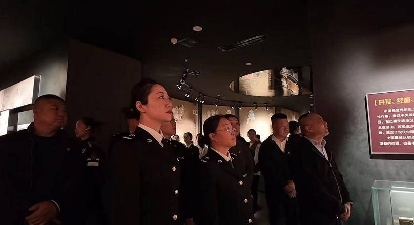 在我校鑄牢中華民族共同體意識教育館,講解員們結(jié)合館內(nèi)豐富的圖文、實物以及等教育資源,借助數(shù)字沙盤、全息投影等科技手段,帶領(lǐng)黨員們穿越千年時空,感受“我們從哪里來?”“我們是誰?”“我們要到哪里去?”等主題展區(qū)中各民族交往交融的壯闊畫卷。讓黨員們在沉浸式體驗中深化對“五個認(rèn)同”的理解。此次活動以“聯(lián)學(xué)共建”為紐帶,將歷史資源、科技手段與基層黨建深度融合,黨員們在“看、聽、感、悟”中厚植家國情懷,進一步深化對鑄牢中華民族共同體意識的思想認(rèn)識。