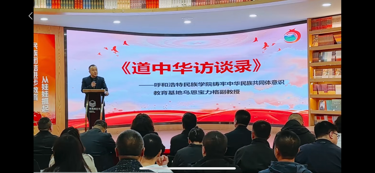 烏恩寶力格、崔佳琦分別作為自治區(qū)鑄牢中華民族共同體意識研究基地的專家代表和青年學生代表,分享了《道中華訪談錄》《道中華文萃》等書籍的節(jié)選內(nèi)容。
