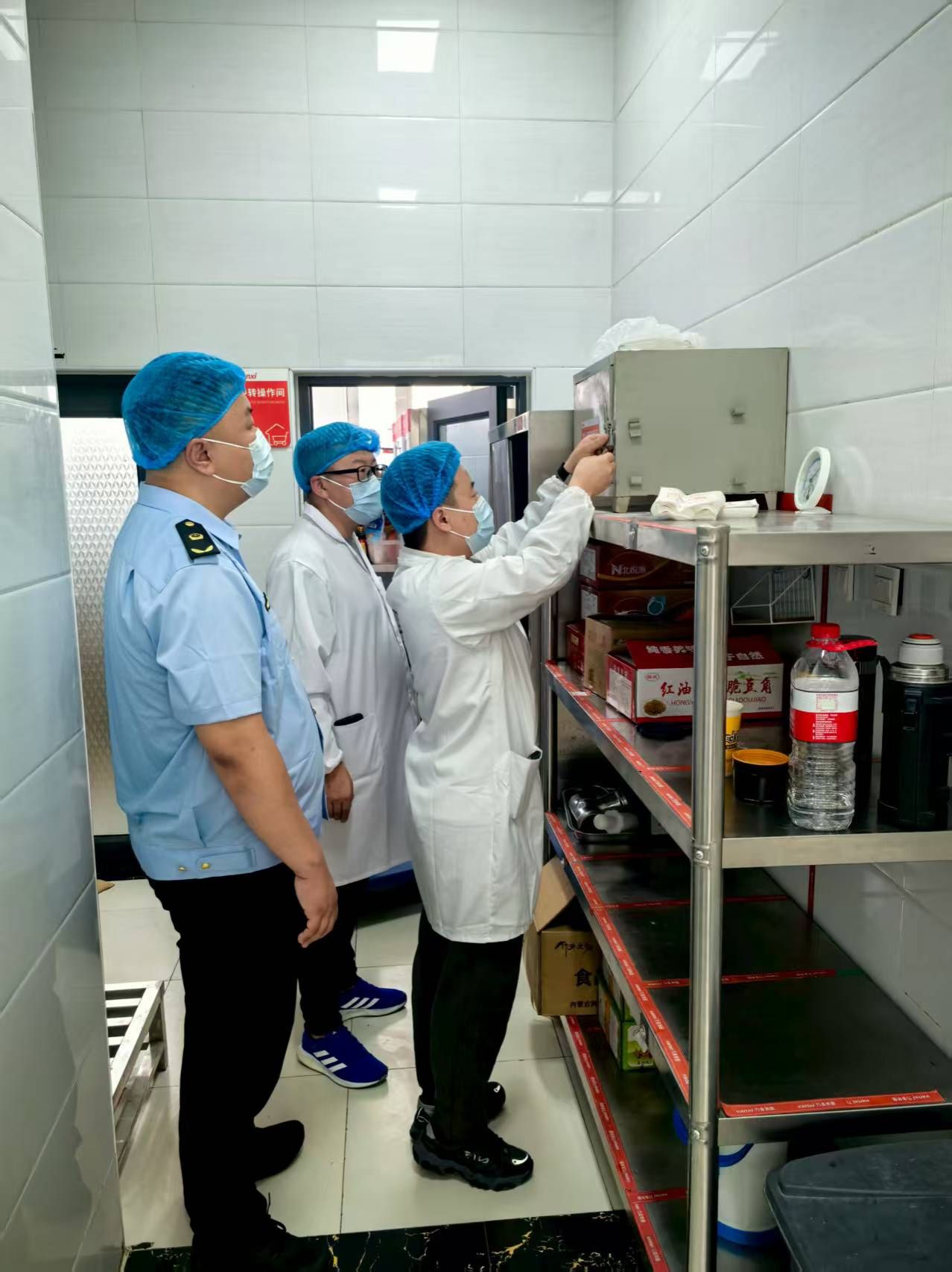 為進一步加強校園食品安全監管,切實保障廣大師生的用餐安全。9月12日,新城區海東路市場監督管理所以“四不兩直”的方式深入我校食堂開展食品安全突擊檢查。后勤管理處相關負責人陪同檢查。