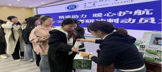 會議最后,舉行了考研慰問品發放儀式。學校為同學們發放包含牛奶、水果的“助考禮包”,并叮囑大家在全力備考的同時注意防寒保暖與營養均衡。學子們紛紛表示,將把學校的關懷轉化為沖刺動力,以最佳狀態迎接考試。