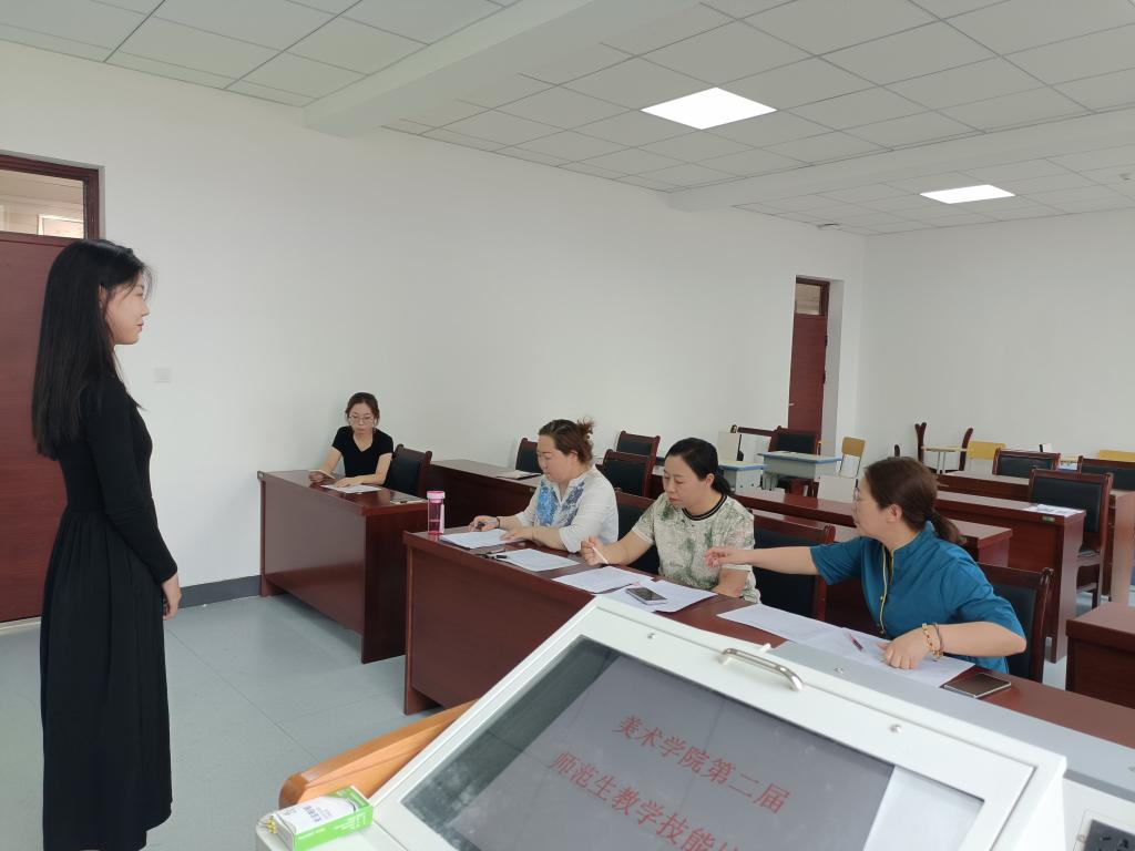 為全面提升美術(shù)學(xué)院師范專業(yè)學(xué)生的教學(xué)能力和綜合素養(yǎng),有效提升學(xué)生的教學(xué)水平和風(fēng)格,不斷增強(qiáng)學(xué)生們的專業(yè)和實踐能力,激發(fā)廣大學(xué)生參與各類實踐活動的積極性,美術(shù)學(xué)院于6月27日-28日在沃德樓212教室舉辦了為期兩天的第二屆師范生教學(xué)技能比賽。我院塔娜、烏云、白永麗三位老師擔(dān)任比賽評委。