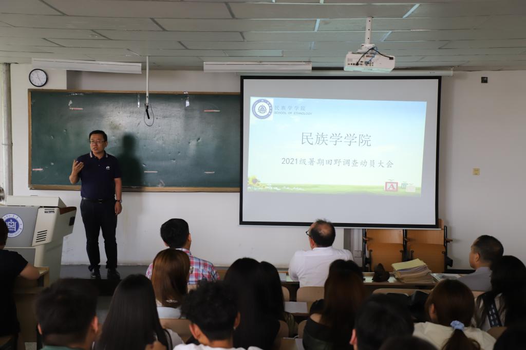 7月8日下午16時,民族學學院召開2021級暑期田野調查動員大會。學院領導班子、指導教師、班主任、輔導員及2021級民族學專業全體學生參加活動?;顒佑稍洪L青斯琴主持。