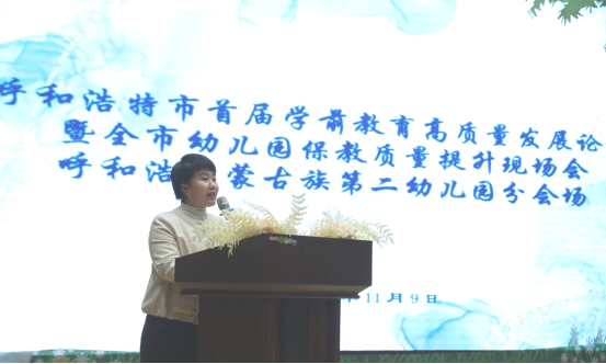 11月9日,呼和浩特市教育局召開首屆學前教育高質量發展論壇暨全市幼兒園保教質量提升現場會。該會議旨在高質量教育建設的時代背景下,促進學前教育工作的高質量體系建設,提高教師隊伍的綜合素質,提升幼兒園辦園質量,我院副院長朱烏英嘎,實踐教研室主任烏日罕參加了本次論壇,其余教師進行線上觀摩。