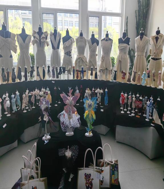 本次展覽主要展出服裝設計專業的圖案設計、構成、立體裁剪、剪紙等課程共200余件作品。同學們以創新思維和美學規律大膽嘗試,將傳統藝術元素與現代流行趨勢相互碰撞、巧妙融合在自己的作品中,并善用色彩,完美結合面料和工藝,構思造型,創意獨特,體現出了同學們正確的藝術觀和創作觀。學生對美的理解、美的素養與對美的追求,表達出了美院師生對北疆文化豐富內涵和中華優秀傳統文化的熱愛,用實際行動為打響“北疆文化”品牌而正在積極探索,全力以赴。
