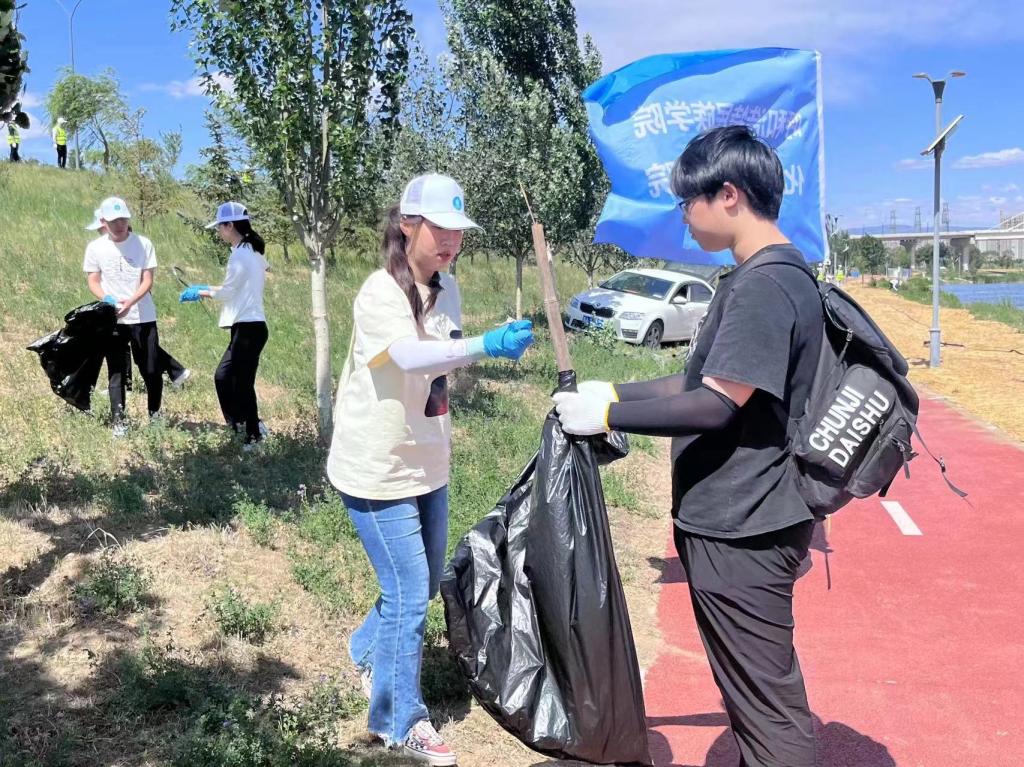 活動中,志愿者們沿大黑河南側道路撿拾沿河灘上的垃圾。我院學生仔細觀察,找出并清理多處衛生死角中的垃圾。大家擼起袖子干得熱火朝天,不僅展現了我院學生的優秀風貌,同時得到了其他志愿者團隊的欣賞與贊揚。