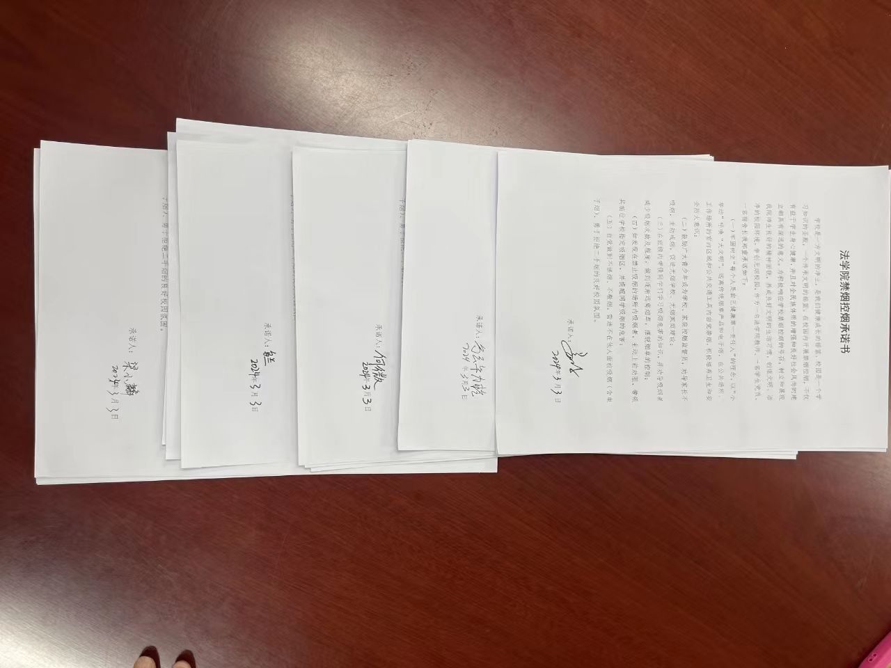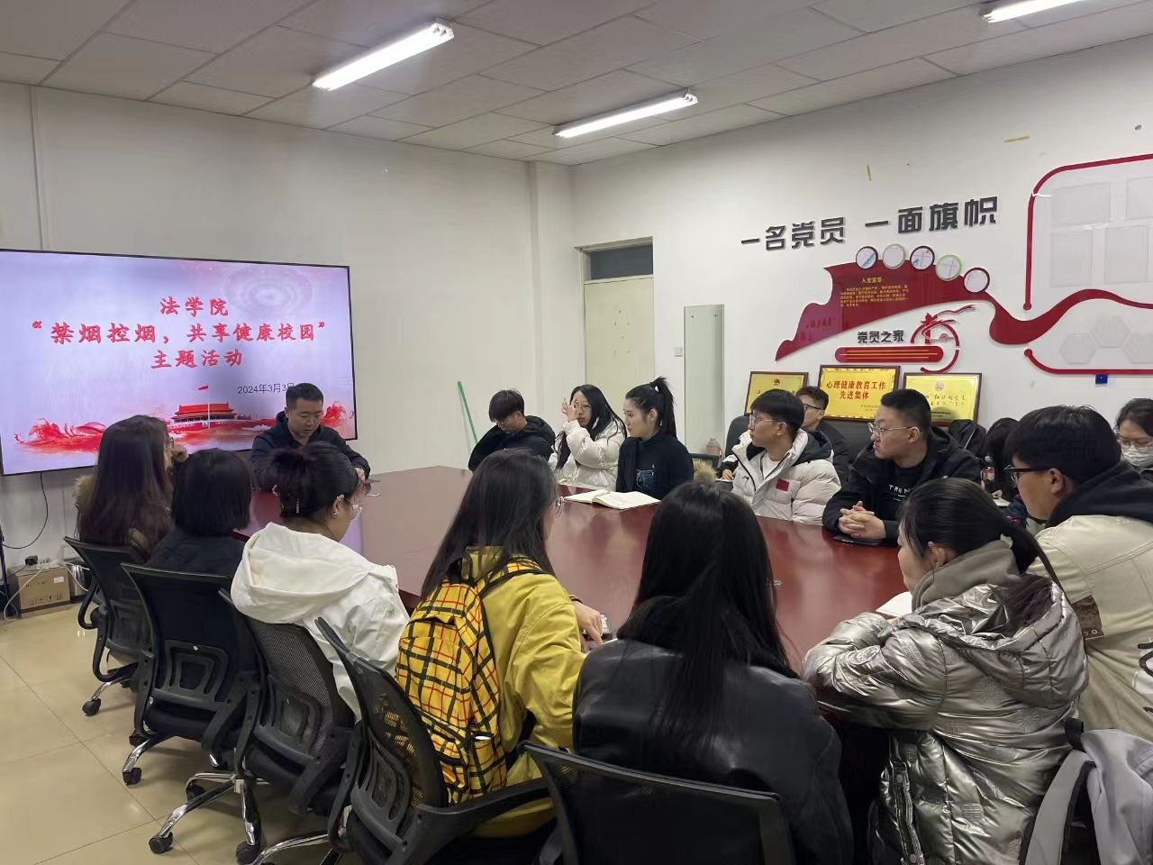 3月4日學院組織全體教師、學生黨員、各宿舍長簽訂《法學院禁煙控煙承諾書》,主動配合改善學院不文明吸煙狀況。目前我院教師已做到100%禁煙,同學們也紛紛表示要自覺抵制煙草,擁抱健康,為營造文明、和諧的校園環境盡一份力量。