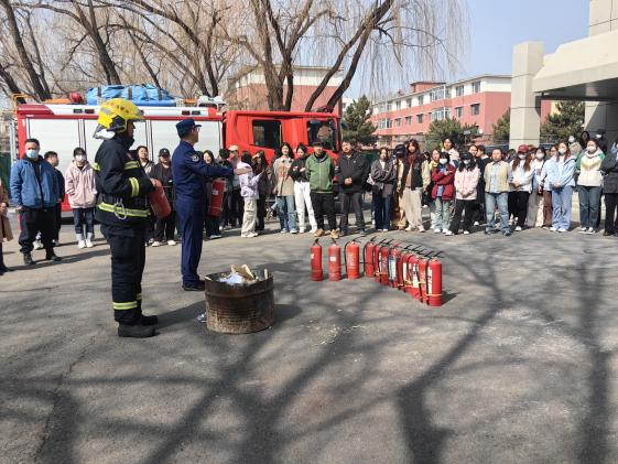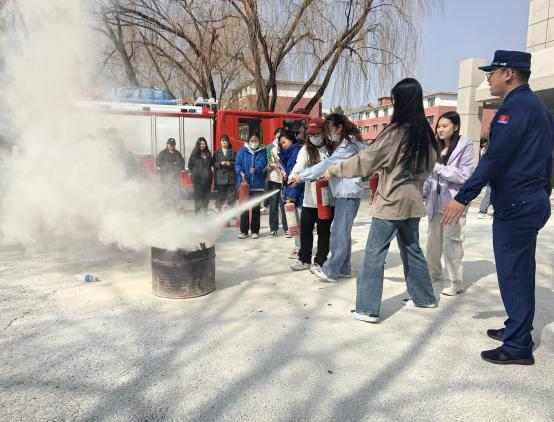 最后,在美術樓樓下進行了滅火實操演練,消防員現(xiàn)場教學干粉滅火器的使用方法、步驟以及注意事項,切實提高了師生應對突發(fā)火災事件后的應急處置能力。