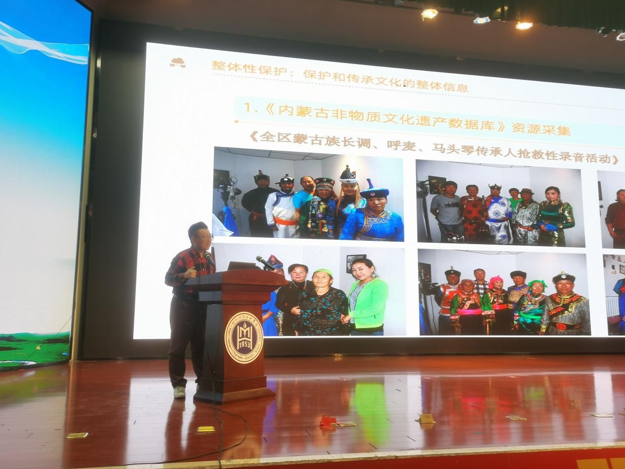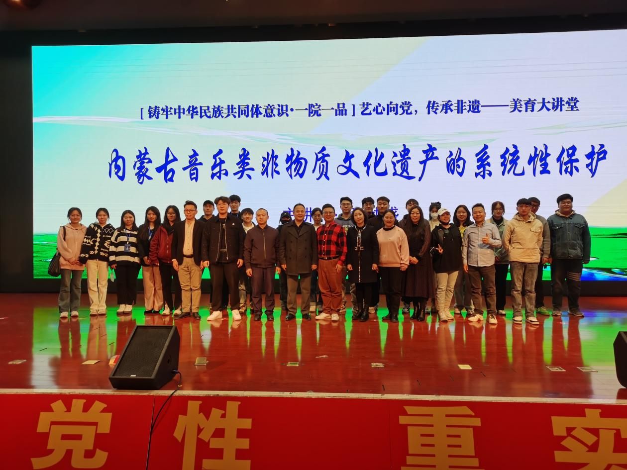 為進一步學習宣傳貫徹黨的二十大精神,落實立德樹人根本任務,全面加強大學生美育工作,推進非物質文化遺產進校園,3月27日,學校在北院圖書館二樓報告廳舉辦了“藝心向黨 傳承非遺”美育大講堂專題講座。本次講座由教務處、統戰部主辦,音樂學院承辦,邀請內蒙古藝術研究院二級藝術評論員、教育部青年拔尖人才張勁盛為我校師生作了題為“內蒙古音樂類非物質文化遺產的系統性保護”的學術講座。講座由音樂學院院長韓木蘭主持。