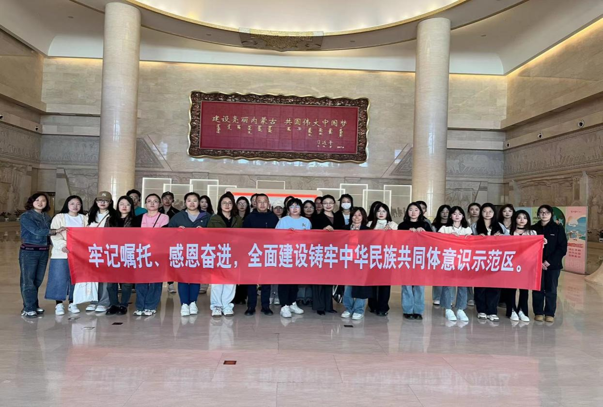 為做好學(xué)校鑄牢中華民族共同體意識(shí)教育館的內(nèi)容講解、實(shí)踐教學(xué)工作,4月19日,在“民族政策宣傳月”到來(lái)之際,統(tǒng)戰(zhàn)部、文學(xué)院、馬克思主義學(xué)院赴內(nèi)蒙古博物院開展“牢記囑托、感恩奮進(jìn),全面建設(shè)鑄牢中華民族共同體意識(shí)示范區(qū)”教育培訓(xùn)活動(dòng)。文學(xué)院黨總支書記李宏亮、副院長(zhǎng)高娃、統(tǒng)戰(zhàn)部副部長(zhǎng)高帆、馬克思主義學(xué)院思政課教師、文學(xué)院“北疆小紅馬”講解團(tuán)和“文音薈萃,同心同語(yǔ)”普通話推廣實(shí)踐團(tuán)成員共37人參加活動(dòng)。