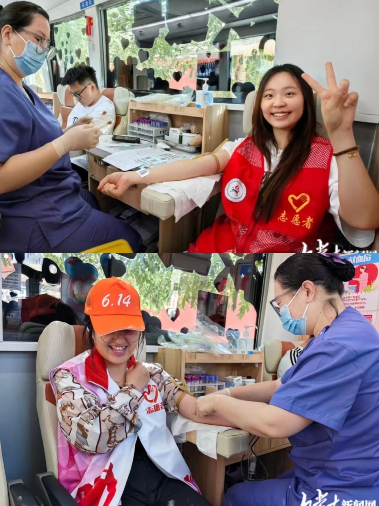 6月16日,經濟管理學院志愿者團隊在玉泉區大召廣場開展了“奉獻涓涓細流匯聚生命暖流”無償獻血活動。
