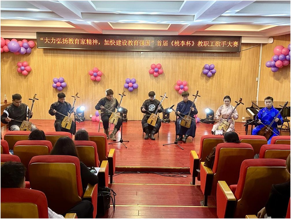 為慶祝第40個教師節(jié),展現(xiàn)我校教職工才藝風(fēng)采,持續(xù)唱響時代主旋律,9月3日晚,由學(xué)校工會主辦,音樂與舞蹈學(xué)院承辦的“大力弘揚(yáng)教育家風(fēng)采,加快建設(shè)教育強(qiáng)國”首屆《桃李杯》教職工歌手大賽在音樂樓多功能廳拉開帷幕。比賽邀請音樂與舞蹈學(xué)院副教授包秀蘭、副教授包金花、青年講師格日樂巴圖擔(dān)任評委。工會、各二級學(xué)院相關(guān)負(fù)責(zé)人、參賽教師、學(xué)生代表近100人觀看了比賽。