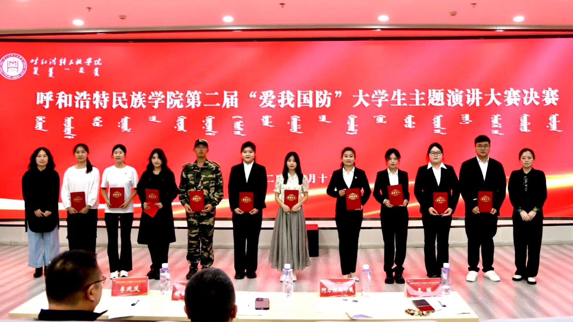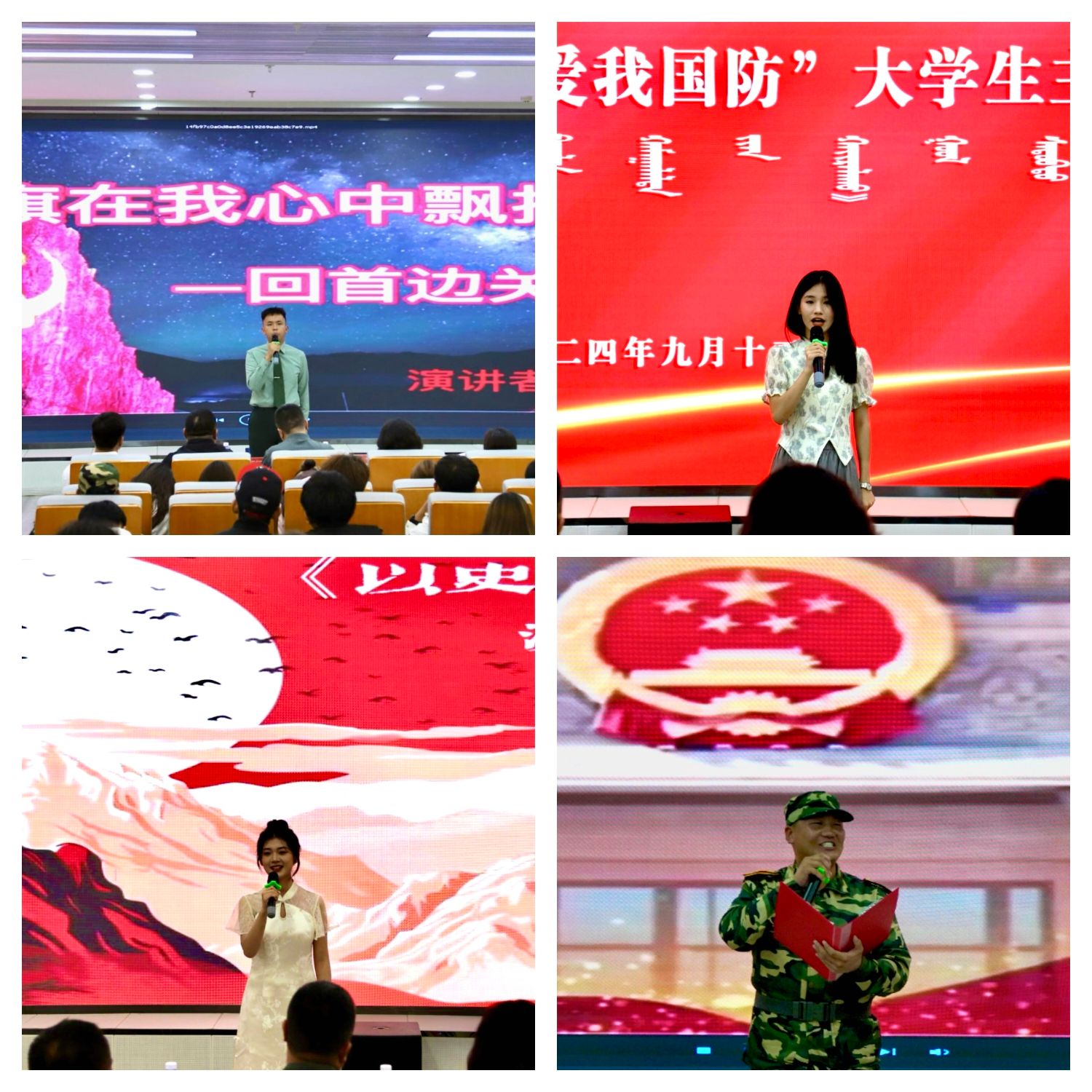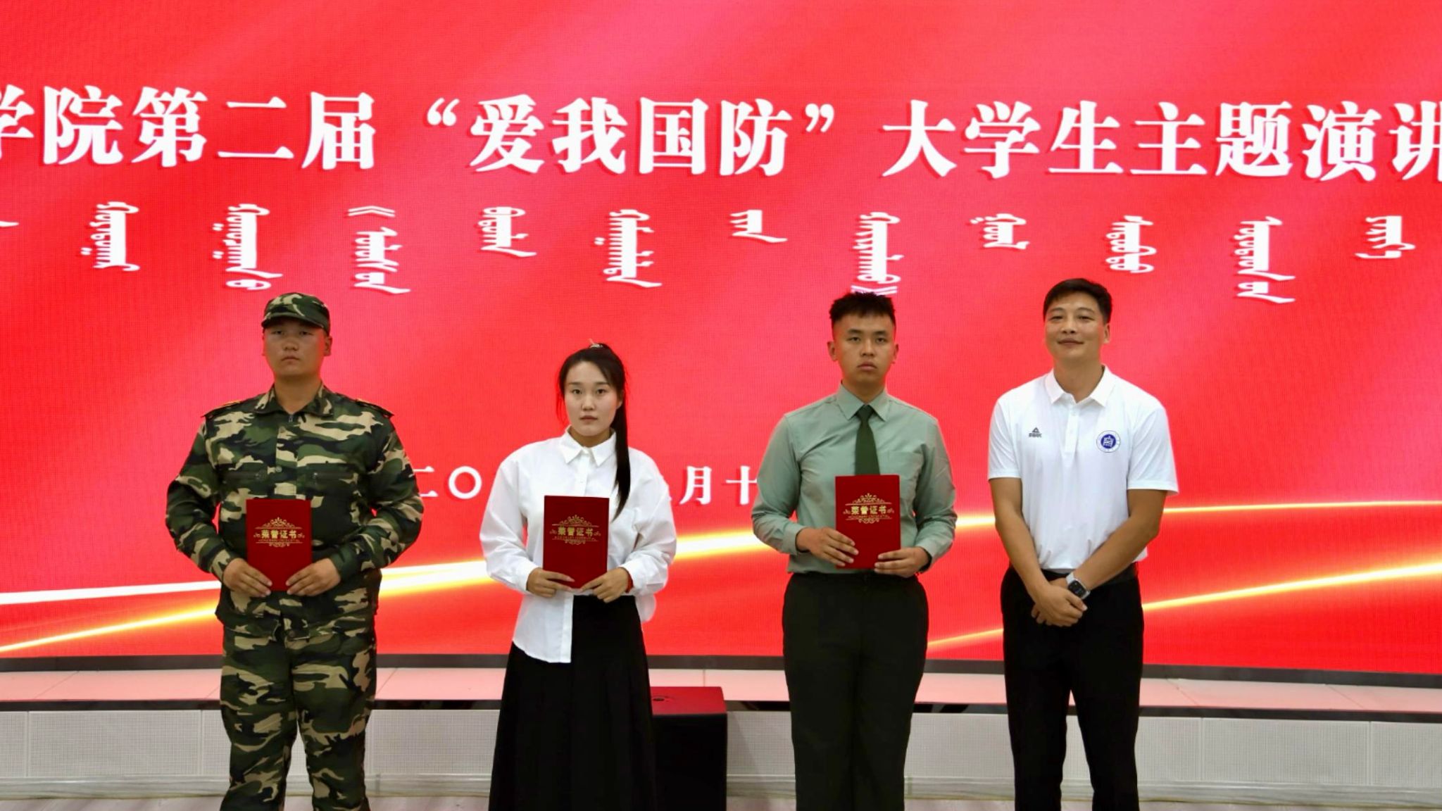 為深入學習貫徹黨的二十大和二十屆二中、三中全會精神,普及國防知識、培育國防觀念,以鑄牢中華民族共同體意識為工作主線,著力提升青年學生的國防意識和國防素養,積極營造關心支持國防和軍隊建設的濃厚氛圍,9月13日,我校在北圖書館一樓報告廳舉辦了第二屆“愛我國防”大學生演講大賽(決賽)。本次大賽評委由教務處副處長額日德木圖、學生工作部副部長李延茂、團委副書記胡斯勒、傳媒學院黨總支副書記王麗、蒙古學學院副處級組織員阿力坦斯那嘎擔任。師生代表180余人參加了此次活動。