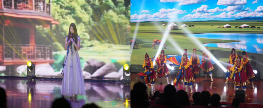 晚會在激昂的馬頭琴曲中拉開帷幕,節(jié)目內(nèi)容豐富多樣,涵蓋群舞、獨舞、獨唱、三重唱、葫蘆絲獨奏、舞獅表演、詩朗誦、情景劇、武術(shù)表演、拉丁舞、健身操、合唱等多種形式。