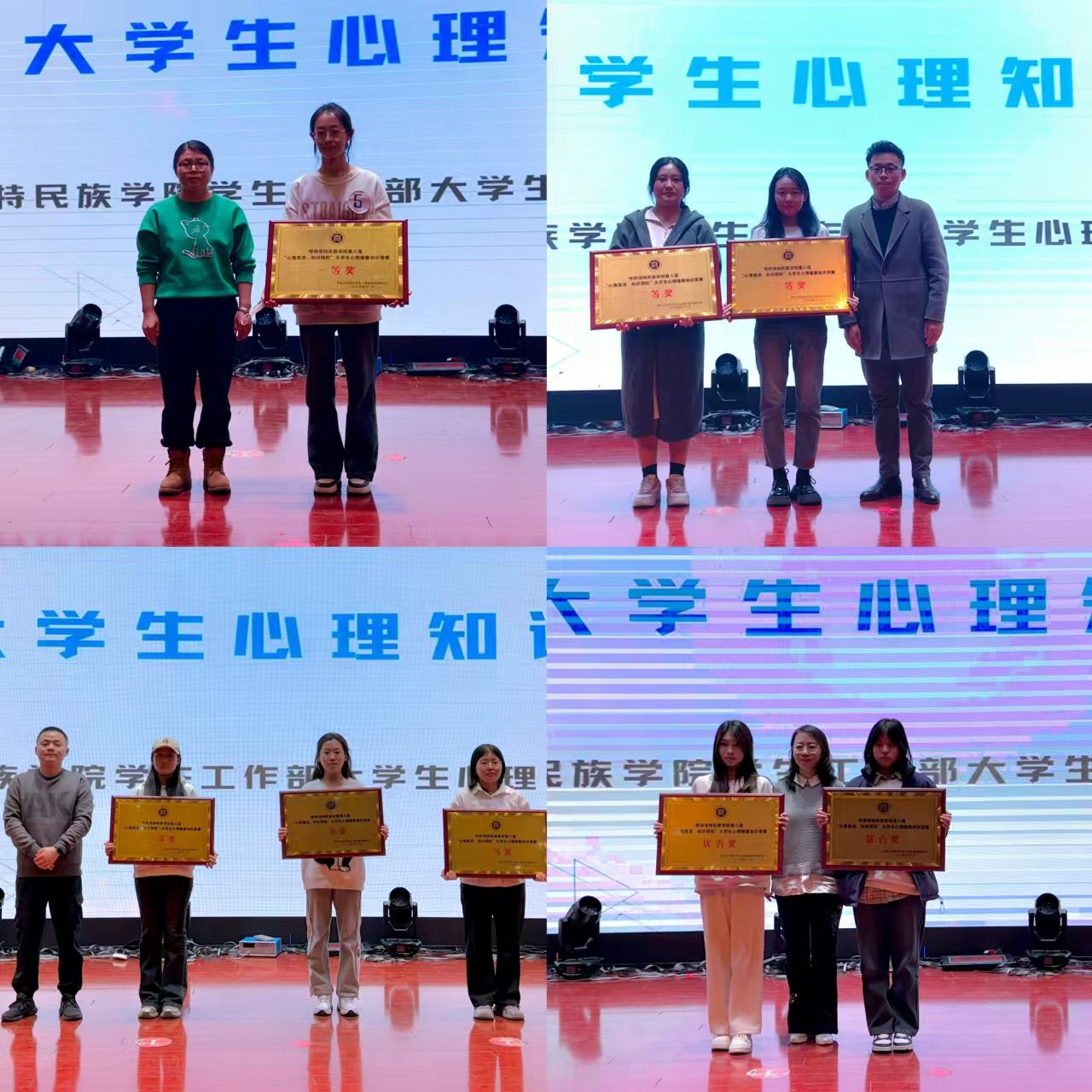 為提升我校大學生心理素質,增強同學們心理調適能力,呼吁大家共同關注心理健康,營造積極的心理育人校園氛圍。11月18日,學生工作部心理健康教育中心在北圖書館二樓報告廳舉辦了呼和浩特民族學院第八屆“心海逐浪,知識領航”“一站式”學生社區大學生心理知識競賽活動。