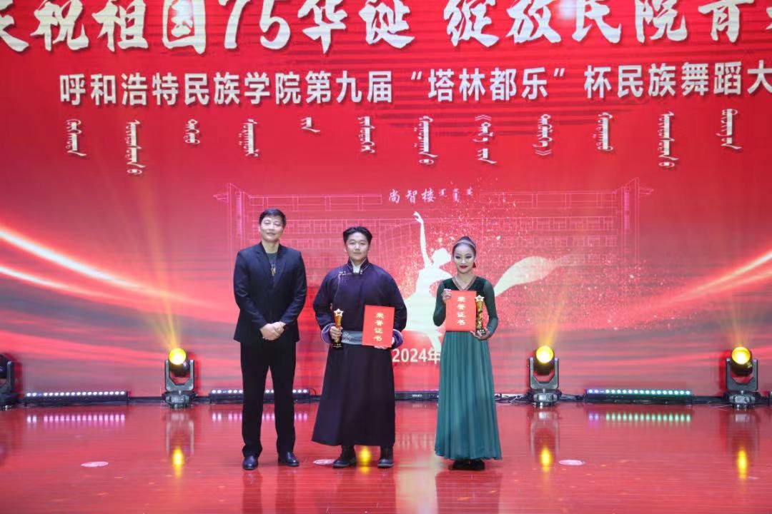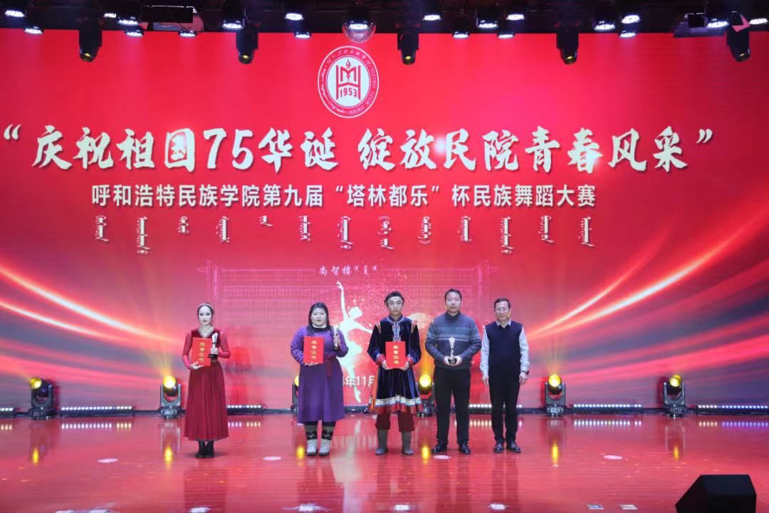 11月27日,由校團委主辦的“慶祝祖國75華誕 綻放民院青春風采”呼和浩特民族學院第九屆“塔林都樂”杯民族舞蹈大賽在北院圖書館二樓報告廳開賽。大賽邀請了校內外專業評委,校團委全體教師、各二級學院黨、團總支書記、輔導員和學生共700余人觀看了大賽。