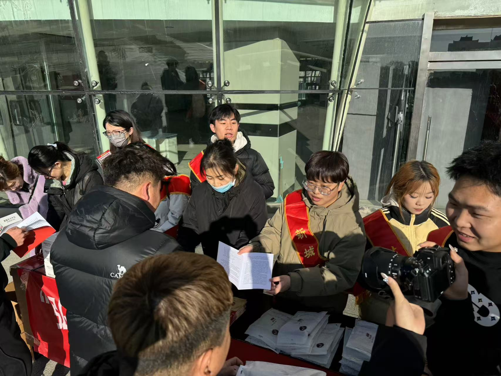 活動(dòng)現(xiàn)場(chǎng),新城區(qū)司法局工作人員和我校法律宣傳志愿者們懸掛“弘揚(yáng)憲法精神,培育法治信仰”橫幅、發(fā)放《中華人民共和國(guó)憲法》宣傳冊(cè),律師們答疑解惑,運(yùn)用專(zhuān)業(yè)法律知識(shí)引導(dǎo)廣大校內(nèi)師生增進(jìn)對(duì)憲法知識(shí)的掌握和運(yùn)用。