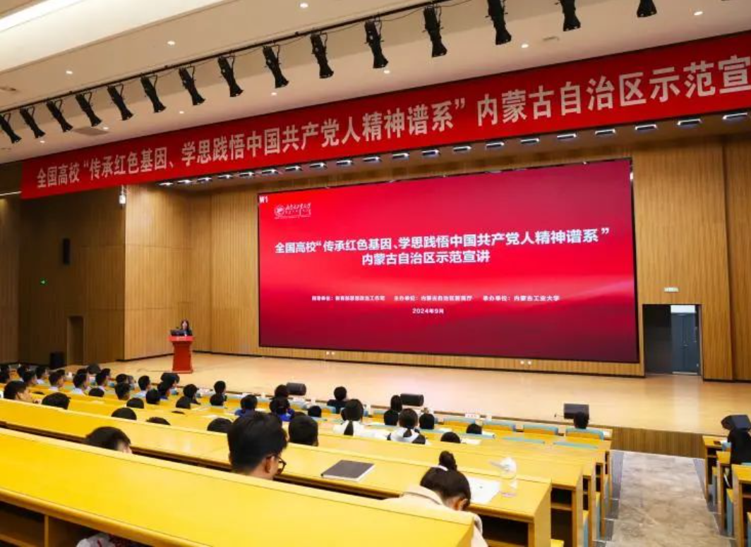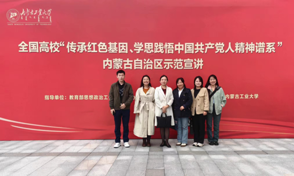 在中華人民共和國成立75周年之際,9月29日下午,由教育部思想政治工作司指導,內蒙古自治區教育廳主辦的全國高校“傳承紅色基因、學思踐悟中國共產黨人精神譜系”內蒙古自治區示范宣講活動在內蒙古工業大學舉行。我校黨委宣傳部、馬克思主義學院干部代表和校園理論宣講團成員、輔導員骨干7人赴現場聆聽宣講。