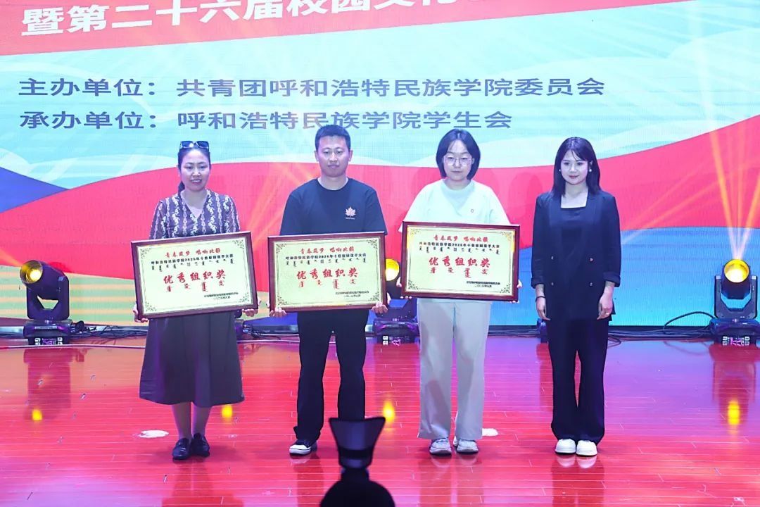 經過評委專業打分與現場氛圍綜合考量,音樂與舞蹈學院海木日獲得專業組一等獎;薩日乃獲得專業組二等獎;紅霞獲得專業組三等獎;白彩云、包薩其日胡獲得專業組優秀獎。馬克思主義學院郭烏云塔娜獲得非專業組一等獎;管理學院康佳鑫、文學院南丁獲得非專業組二等獎;新聞傳媒學院包楷木、管理學院王鶴然、蒙古學學院柴拉干獲得非專業組三等獎;計算機與信息技術學院張曉婧、商學院苗書銳等8名同學獲得非專業組優秀獎。新聞傳媒學院包楷木獲得“最佳臺風獎”;馬克思主義學院郭烏云塔娜獲得“最具網絡人氣獎”;新聞傳媒學院、管理學院、計算機與信息技術學院獲得“優秀組織獎”。