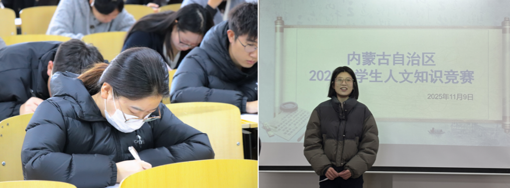 11月9日,由我校教務處主辦、文學院承辦的內蒙古自治區2025年大學生人文知識競賽校級選拔賽順利舉行。本次比賽由文學院王佳、李薩如拉、李雪寧三位老師擔任指導教師,來自各學院的75位學子同臺競技。