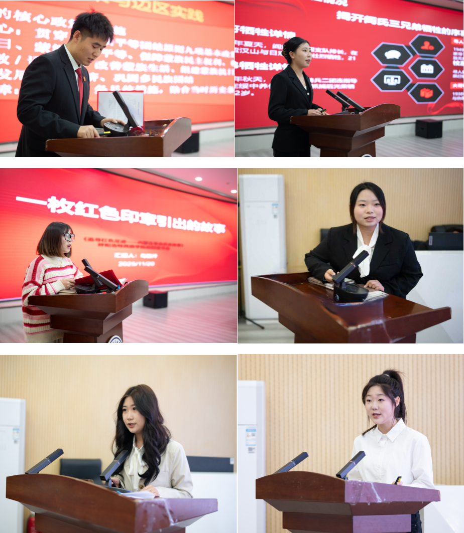 活動現場,來自內蒙古土默特博物館志愿者、回民區法院干警李昊哲以及我校新聞傳媒學院的郝佳、文學院的閆洋、烏雅汗、柴靜、張曉潔等學生代表深情講述了《八路軍三戰三捷震軍威》《一枚紅色印章引出的故事》《八路軍挺進大青山》等感人至深的紅色故事。故事分享結束后,現場聆聽的學生代表進行了互動交流。
