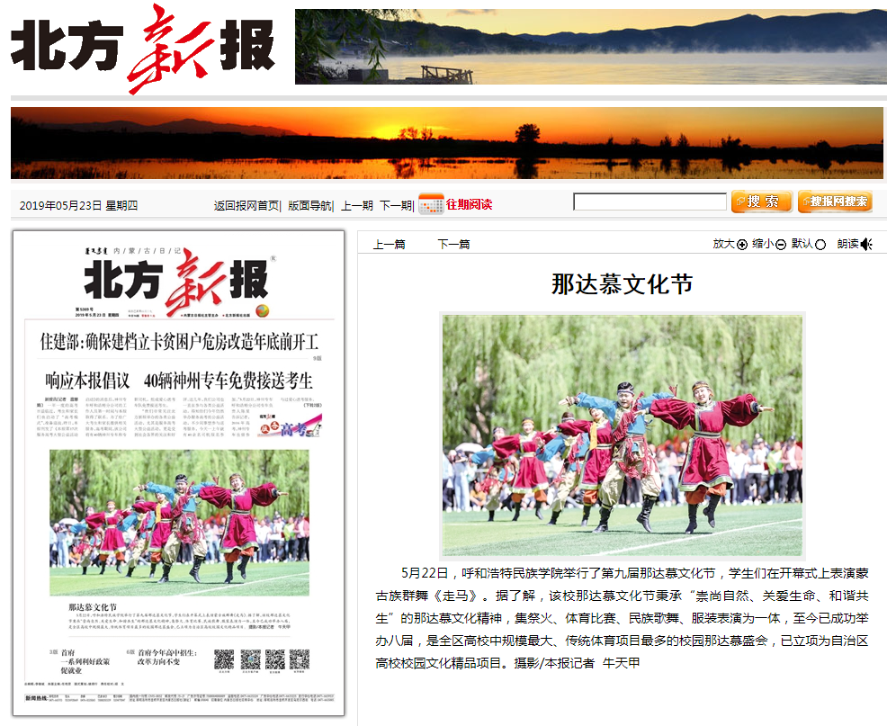 自學(xué)校那達慕文化節(jié)開幕以來,《人民日報》《中國日報》等30家中央和省部級新聞媒體深入校園,對學(xué)校第九屆校園那達慕文化節(jié)進行采訪,報道此次校園盛會。
