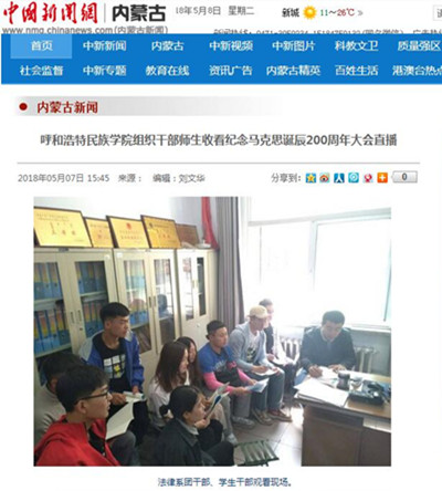 5月4日上午,我校第一時間組織廣大干部師生收看紀念馬克思200周年大會,集中學習了習近平總書記在紀念馬克思誕辰200周年大會的講話。習近平總書記的講話在廣大干部師生中引起了強烈反響,受到媒體的廣泛關注。 中國新聞網、內蒙古晨網等媒體對我校開展廣大干部師生收看紀念馬克思誕辰200周年大會活動進行了報道。