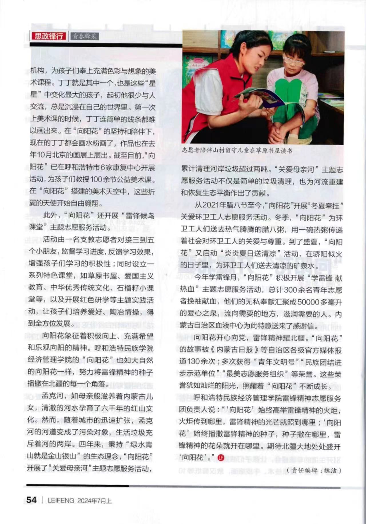 《雷鋒》雜志刊發呼和浩特民族學院商學院青年志愿服務工作事跡