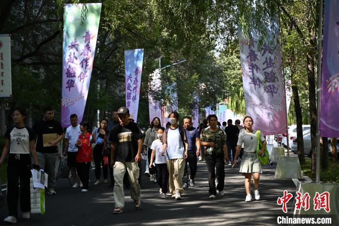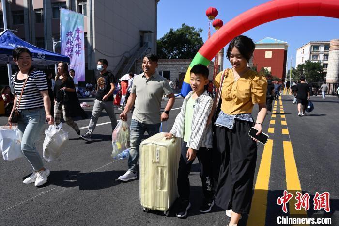 8月30日,內蒙古呼和浩特市,全家陪同大學生入校報到。中新社記者 劉文華 攝