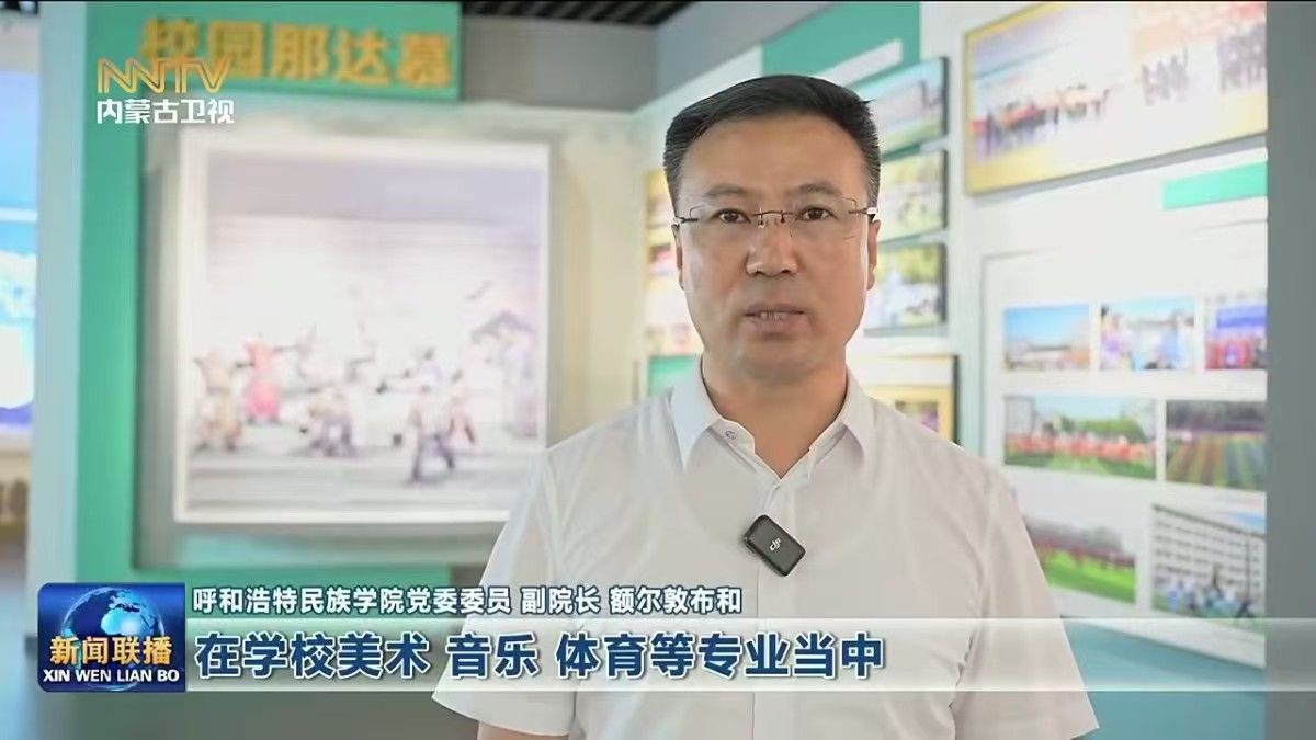 呼和浩特民族學院黨委委員 副院長 額爾敦布和 在學校美術、音樂、體育等專業當中,設置了金屬工藝、皮藝、呼麥、長調、布魯、武術等相關的課程,傳承非遺技能。