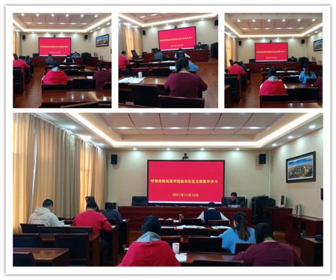 2021年11月12日下午,教務(wù)處黨支部在行政四樓會(huì)議室開展“關(guān)于習(xí)近平總書記近期重要文章、講話精神和十九屆六次全會(huì)公報(bào)的集體學(xué)習(xí)會(huì)”為主題的專題學(xué)習(xí)活動(dòng)。教務(wù)處全體黨員參加學(xué)習(xí),會(huì)議由學(xué)校黨委委員、教務(wù)處黨支部書記額爾敦布和同志主持。