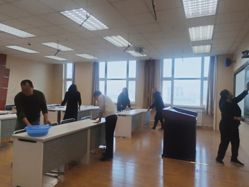 黨員們拿著掃帚、抹布、簸箕、鏟子等工具,對教室的門、窗、垃圾、衛生死角等處進行逐一清理,大家熱情高漲。在勞動中,全體黨員發揚了不怕臟、不怕苦、不怕累的志愿服務精神,齊心協力,相互配合干的熱火朝天。