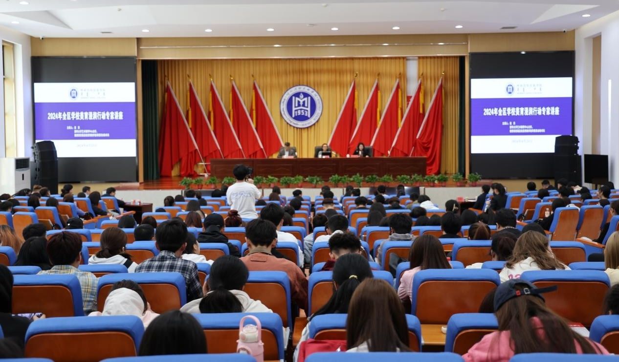 教務處全體人員、各二級學院院長、學校美育教研室成員、學生代表近400人聆聽講座。