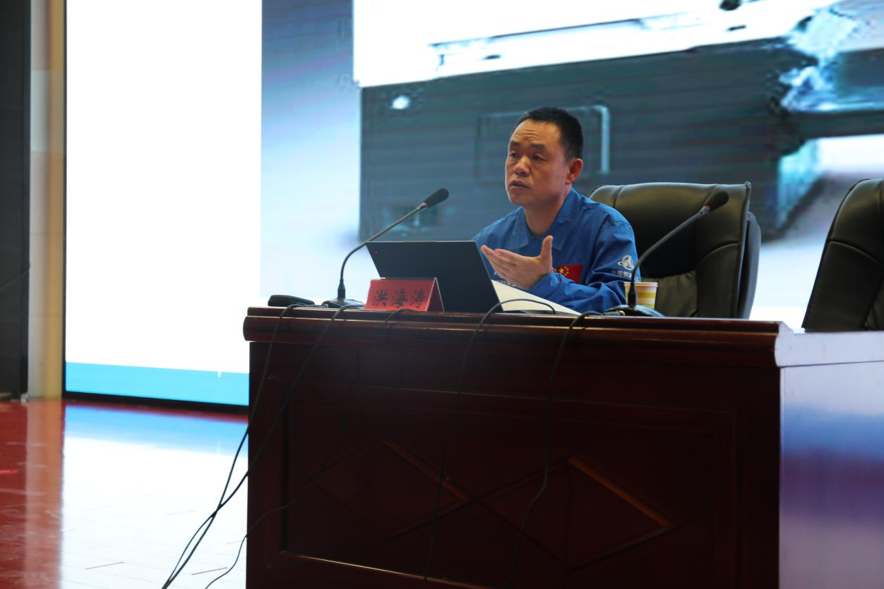 “作為一名‘航二代’,車工崗是我一生的追求,我始終保持一個想法,就是要干一行愛一行,愛一行謀一行,謀一行專一行,要給中國人爭口氣,為航天產(chǎn)業(yè)‘搬好磚’‘砌好墻’,用工匠精神傳承航天精神。”中國共產(chǎn)黨內(nèi)蒙古自治區(qū)第十一屆黨代會代表,中國航天科工集團第六研究院內(nèi)蒙古航天紅崗機械有限公司特級技師,全國五一勞動獎?wù)隆?nèi)蒙古自治區(qū)五一勞動獎?wù)隆?nèi)蒙古自治區(qū)“突出貢獻專家獎”、中國航天基金獎、全國技術(shù)能手、航天技術(shù)能手、首批“大國工匠”獲得者洪海濤以《為國鑄劍 守望夢想》為題,為師生娓娓道出自己投身航天事業(yè)的感人故事。