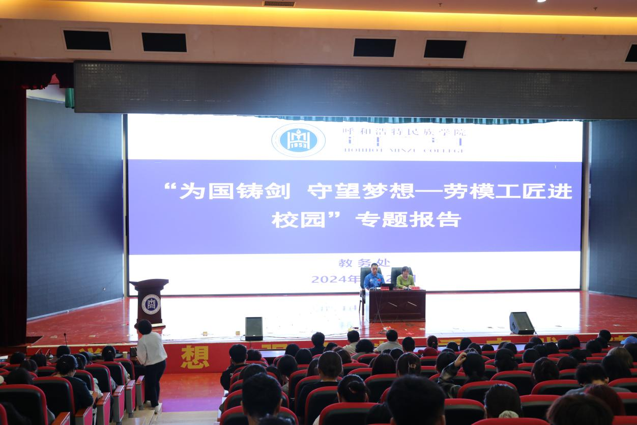 為進一步貫徹落實黨的二十大精神,弘揚勞模精神、勞動精神、工匠精神,發(fā)揚勞動模范在高校中的榜樣作用,培養(yǎng)有理想、敢擔(dān)當、能吃苦、肯奮斗的新時代好青年。學(xué)校結(jié)合2024年勞動教育宣傳月工作安排,5月29日在北圖書館二樓報告廳舉辦了“為國鑄劍 守望夢想——勞模工匠進校園”專題報告會。報告會由教務(wù)處主辦,教務(wù)處處長肖查娜主持,各二級學(xué)院師生代表600余人聆聽。