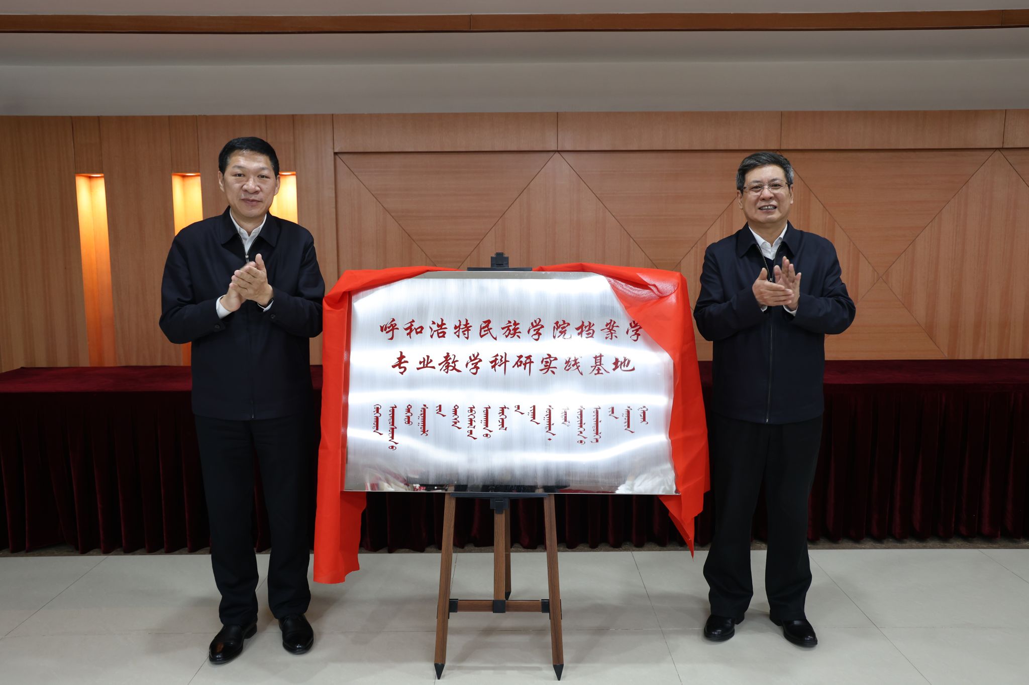 劉九萬(wàn)與李淳仁為“呼和浩特民族學(xué)院檔案學(xué)專(zhuān)業(yè)教學(xué)科研實(shí)踐基地”揭牌