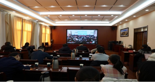 本次會議通過線上和線下相結合的方式進行,主會場設在自治區(qū)教育廳,我校在辦公樓4樓會議室設立分會場。校黨委委員、副校長額爾敦布和出席本次視頻會議。教務處、發(fā)展規(guī)劃與學科建設處、各學院相關負責人參加會議。