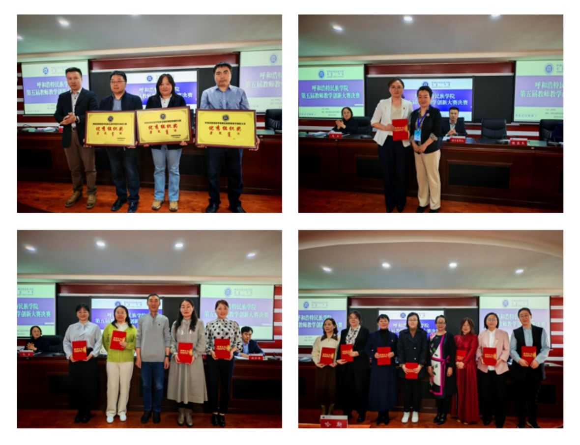 閉幕式上,額爾敦布和宣讀比賽結果后與特邀評委一起為獲獎教師和集體頒發了榮譽證書、獎牌。評委組組長、內蒙古工業大學陳亞杰教授對本次比賽進行了全面而深入的專業點評。她著重從教學理念、教學內容、課程思政、教學過程、設計創新、教學效果等六個維度展開評析,既肯定了教師們在教學創新方面的亮點與突破,也針對存在的問題提出了寶貴的改進建議,為教師們進一步提升教學創新能力指明了方向。
