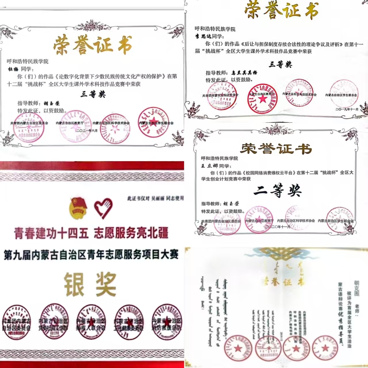教學(xué)成果豐碩:近年來教師榮獲自治區(qū)黨委精神文明建設(shè) “五個一工程” 獎 1 人,國家教育部優(yōu)秀教材三等獎 2 人,內(nèi)蒙古政府教學(xué)成果二等獎 1 人,《烏蘭夫民族高等教育師資培養(yǎng)基金》獎16人,“自治區(qū)新世紀(jì)321人才工程”二層次人選1人等多項榮譽(yù),教學(xué)科研實力持續(xù)提升。