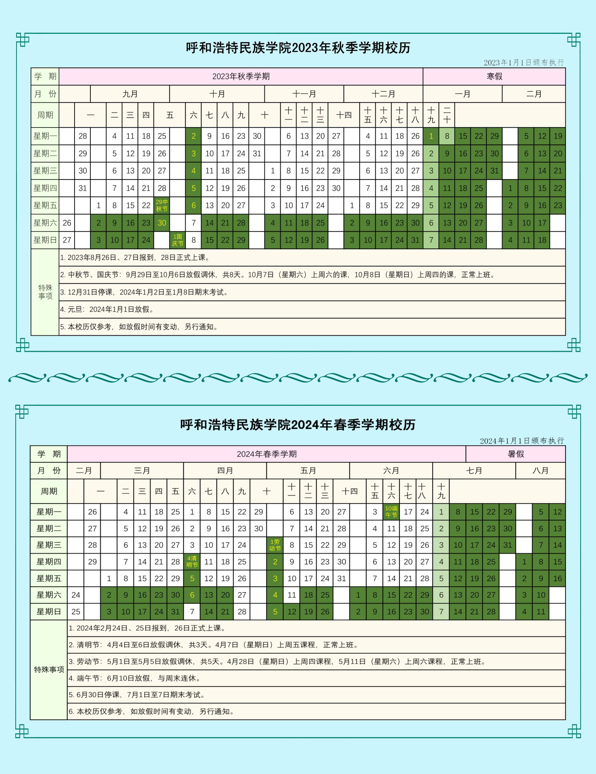 呼和浩特民族學(xué)院2023-2024學(xué)年校歷