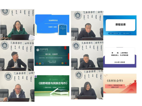 12月7日,民族學學院開展了專業課說課活動,活動由副院長敖特根蘇布德主持。12名專業課任課教師圍繞課程團隊、課程資源、教學大綱設計及課程評價標準、教學改革與成效、理論與實踐教學比例、近三年試卷整理、學生評價情況等內容進行了說課。院長青斯琴對教師說課情況進行了總結點評。