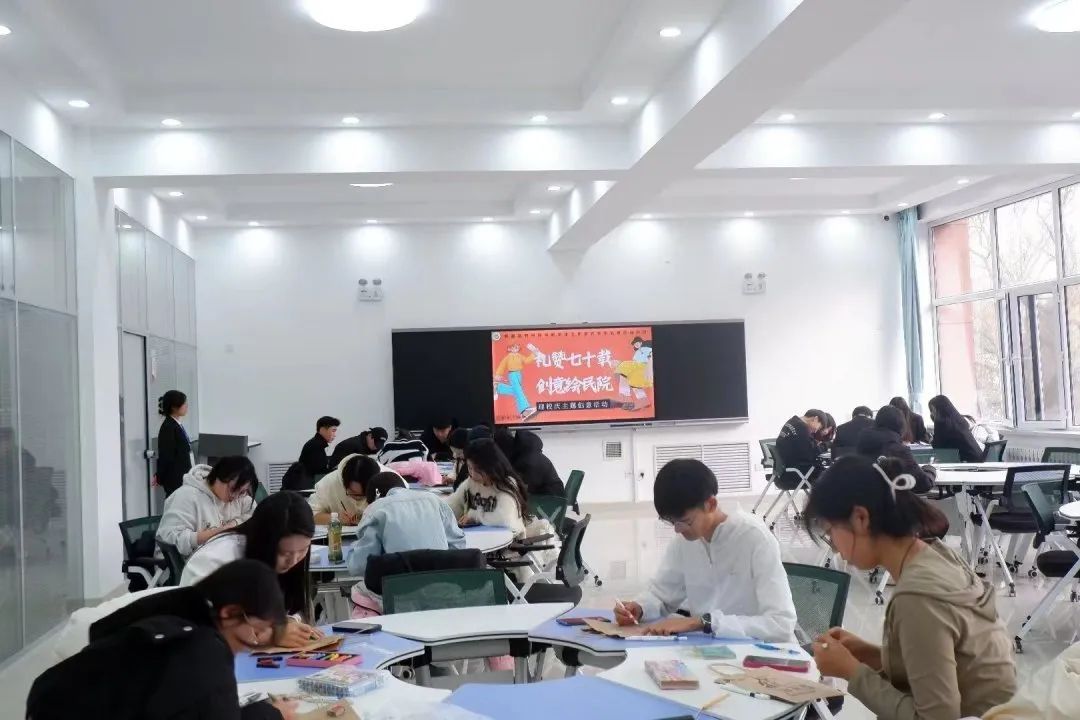 佳期將至,同心期盼。為展現我院學子蓬勃向上的精神風貌,在學校上下喜迎建校70周年之際,黨委學生工作部心理健康教育服務與咨詢中心于12月3日在創業樓203團體輔導室舉辦了“禮贊七十載,創意繪民院”迎校慶主題創意活動。