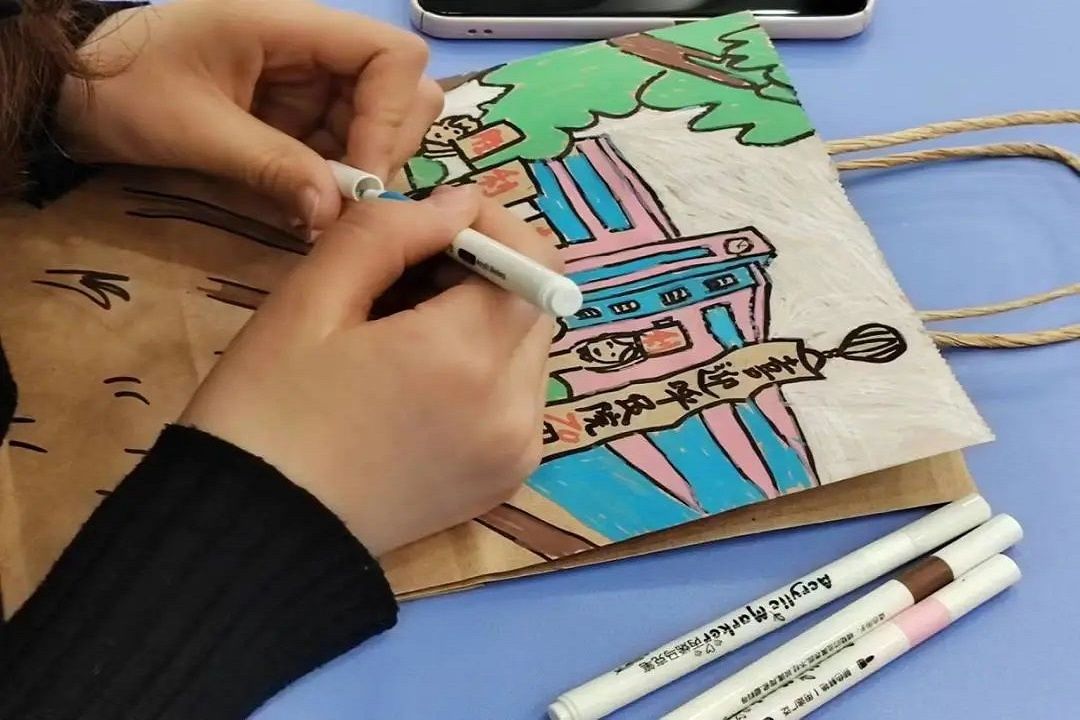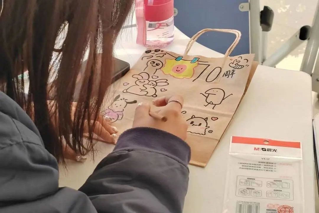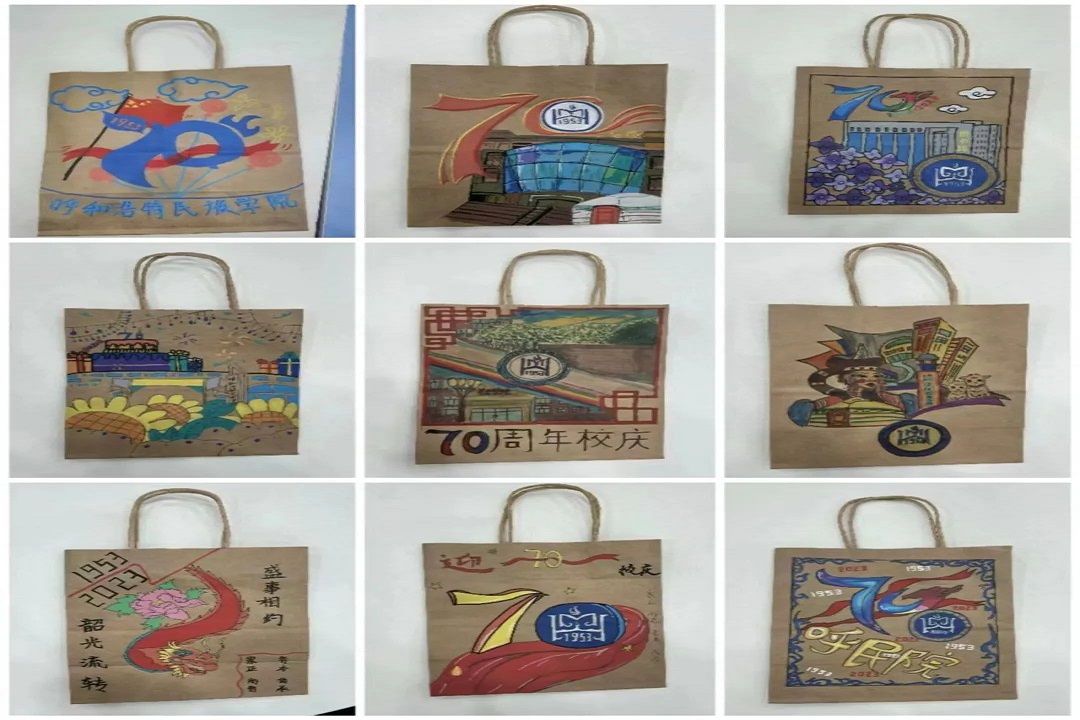 活動伊始,來自各學院的參賽選手熱情洋溢來到活動現場,大家揮動手中的畫筆,在小小的紙袋上用五彩繽紛的顏色描繪出自己心中的呼民院,用自己的方式表達對母校最真摯的祝福。