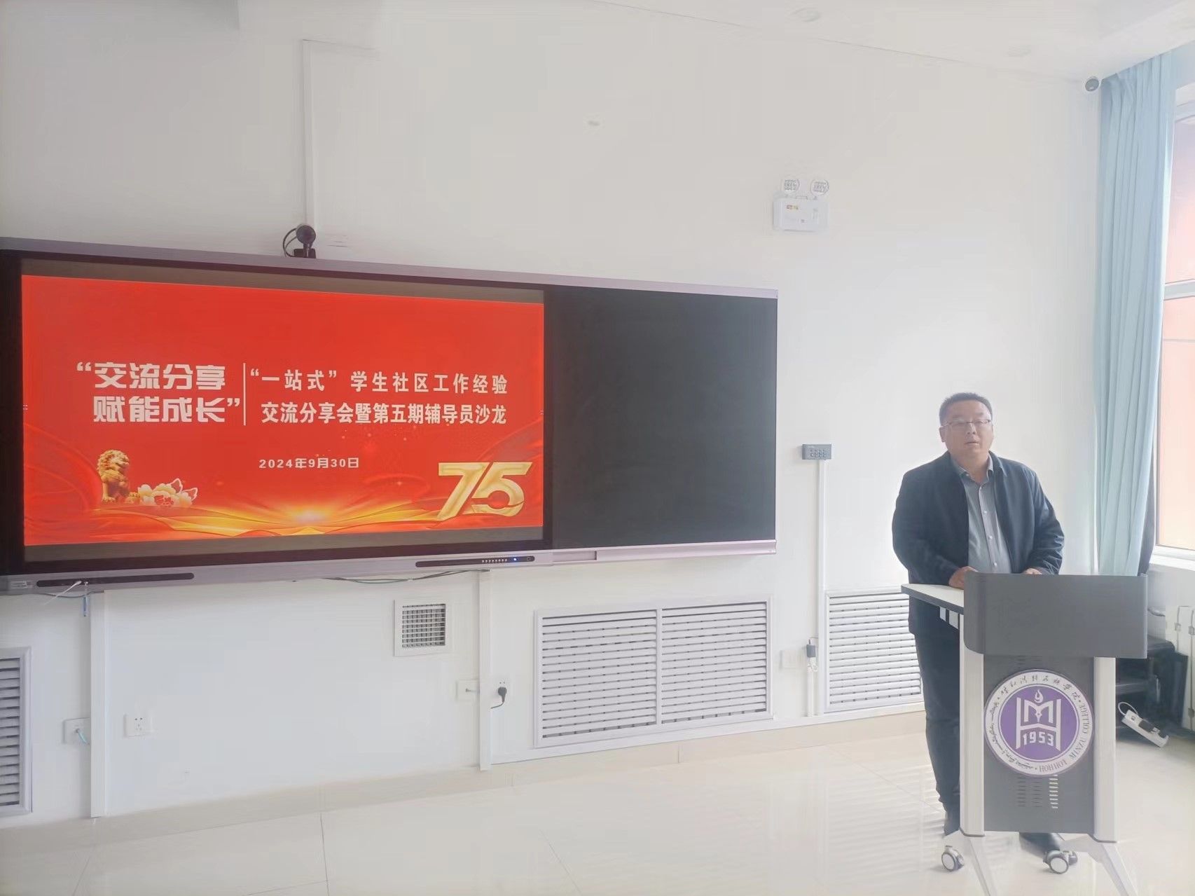 為全面加強和改進新時代“一站式”學生社區建設工作,提升輔導員隊伍專業素養,9月30日下午,學生工作部在“一站式”學生社區團體輔導室組織召開了“交流分享,賦能成長”為主題的“一站式”學生社區工作經驗交流分享會暨第五期輔導員沙龍。會議由學生工作部部長常喜主持。