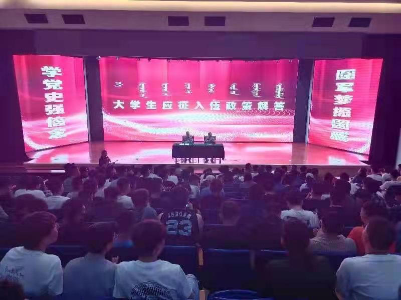 為扎實有序推進我校征兵工作,確保高標準、高水平、高質量完成征兵工作任務,6月16日晚7點,我校在圖書館二樓報告廳召開學校2021年度征兵工作推進會。新城區武裝部孟樹濤部長和富昱陶參謀到會指導,學生工作部、就業指導處全體工作人員、各二級學院輔導員、2017級、2019級全體男生共400余人參會,會議由就業指導處包倉主持。