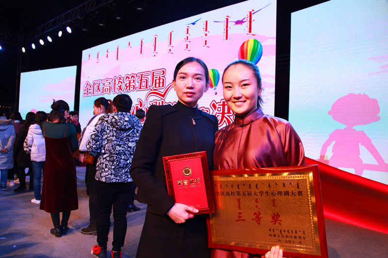 經過緊張激烈的角逐,內蒙古醫科大學心理劇《頭頂蒼天》和《白日夢》分別奪得漢語組和蒙語組一等獎。我校選送的劇目《富與窮》講述了大學生由于不同價值觀引發的一系列有趣故事,在劇中大學生們通過家長和老師的疏導,終于明白了富與窮的真實含義。最終,該劇目喜獲蒙語組第三名,指導教師齊丹獲得“優秀指導教師”稱號。