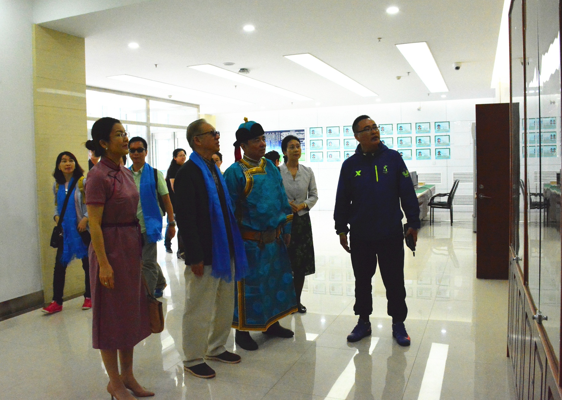 格日樂圖院長在天驕廣場前以蒙古族禮儀迎接了盧沃棠先生一行。
