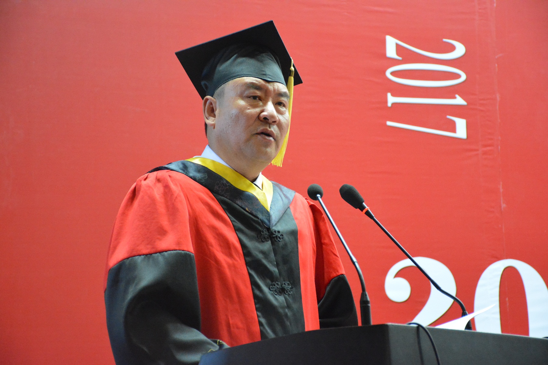 師生代表發言結束后,格日樂圖院長殷切致辭,為畢業生上了最后一堂課。他首先代表全體師生員工,向圓滿完成學業的全體畢業生表示熱烈的祝賀和誠摯的祝福,向悉心指導和培育的老師們及關心關愛的父母家人表示感謝。格院長表示,2017屆畢業生在四年的學習生涯中勤奮學習、勇創佳績,為學校發展的史冊再添奪目篇章。格日樂圖院長希望各位畢業生胸懷夢想、修身養德、勇往直前,希望考取研究生的同學們繼續發揚拼搏精神、優良作風、時代精神。同時祝愿學生珍惜昨天的態度,放飛今天的夢想,書寫明天最璀璨的華章。