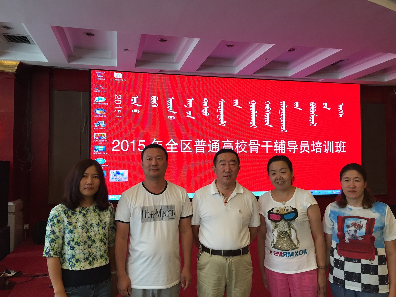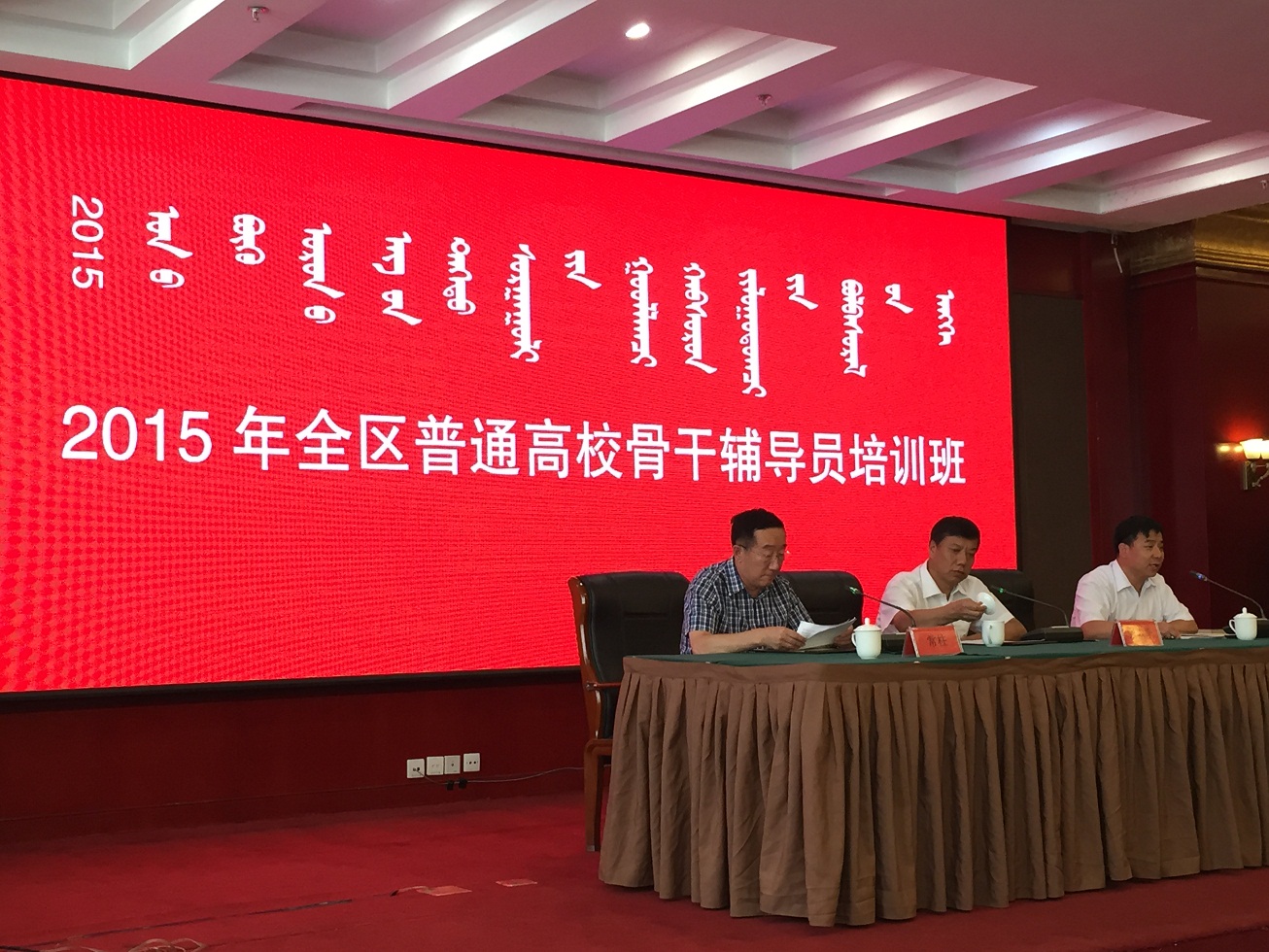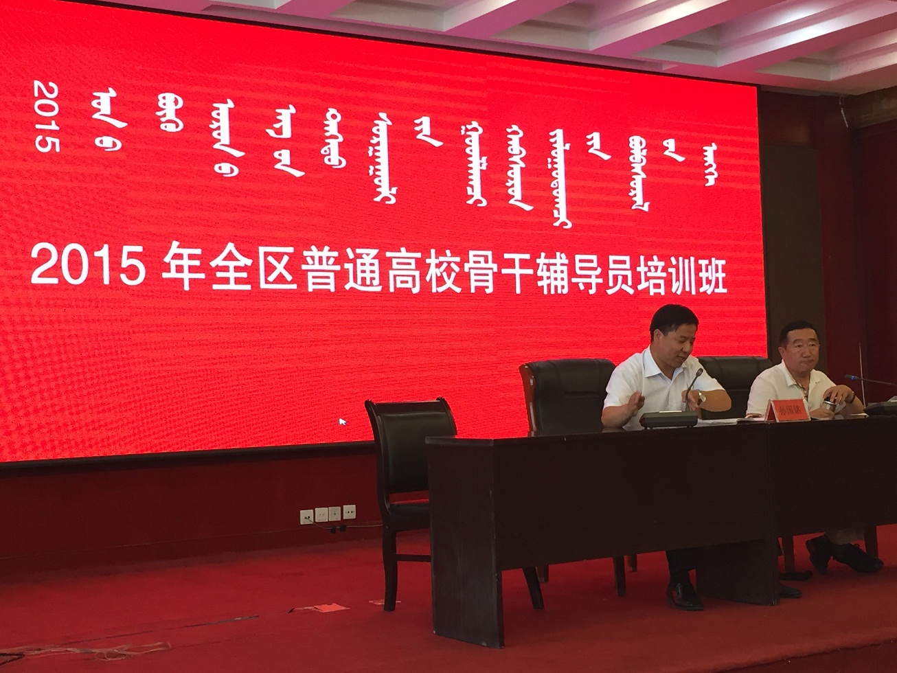 由內蒙古黨委宣傳部、內蒙古自治區教育廳舉辦的2015年全區普通高等學校骨干輔導員培訓班于2015年8月12-14日在呼和浩特維力斯大灑店召開。